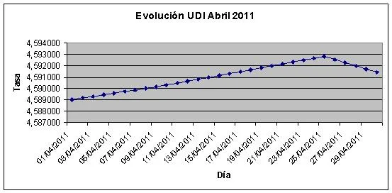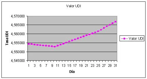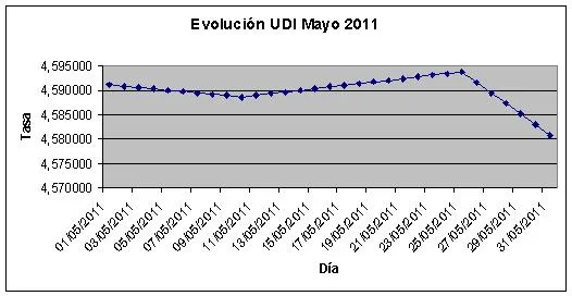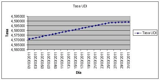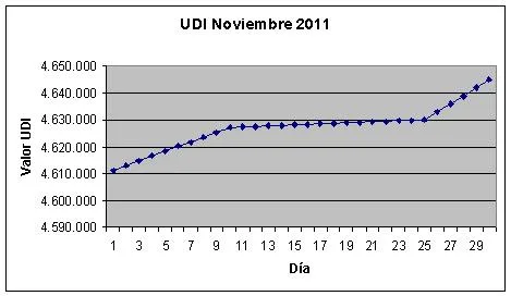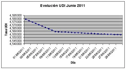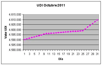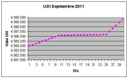 El valor de la UDI 2011 del 10 al 25 de cada mes, será igual a la variación del Índice Nacional de Precios al Consumidor (INPC) en la segunda quincena del mes inmediato anterior. Así, sucesivamente.